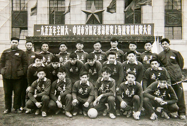 图片4:1955年,南京市足球队队员合影,第一排右二为厉声教