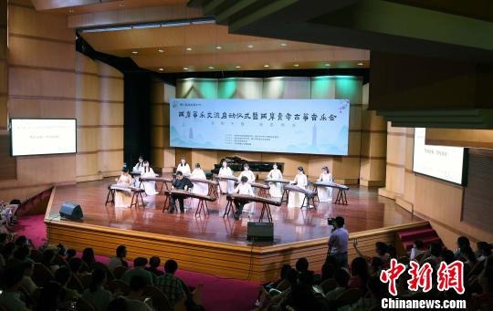 中新网福州8月9日电 (刘可耕 郑江洛)第六届海峡青年节·两岸青年筝乐艺术交流活动,9日在福州启动。来自台湾中国文化艺术学院、筝艺之妍重奏团和福建艺术学校、福州项林筝乐馆等30余名两岸古筝乐艺术传承人,以及两岸300多名古筝音乐爱好者参加了启动活动。