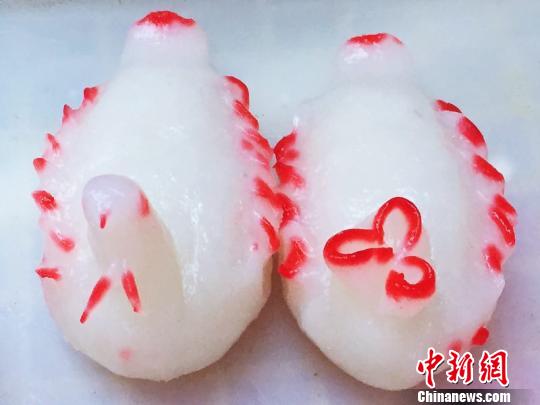 据黄女士介绍,做鹅糍的方法看似简单但也很讲究手上的功夫,需按一定的比例搭配澄面、生粉和食盐,用热水搓粉,揉搓成粉团后,按需拽出小粉团,搓圆、压扁成粉皮,包成两头尖、中间空的模样,短的一头尖按成尾巴状,另一头的尖捏成带脖子的鹅头状,在两侧捏些扭纹呈翅膀状,然后在翅膀、鹅头等地方抹上红色的食用颜料即可。