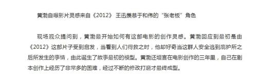 网页截图:黄渤曾说,电影灵感来源于《2012》