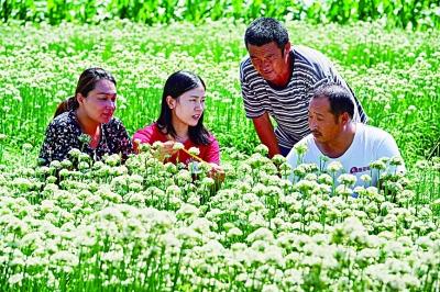 在读硕士研究生在河北省滦南县胡各庄镇北圈村为菜农讲解蔬菜管理技术。新华社记者 杨世尧摄