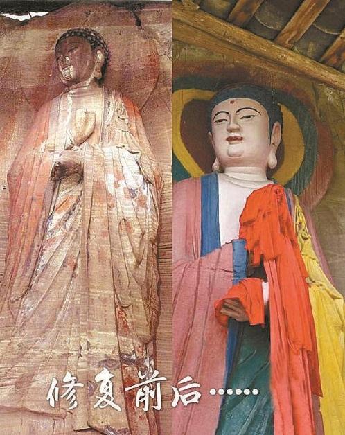 这一精致慎重的修复过程,可谓是对“国之重器”的修复标准,也是公众对文物修复的心理认可。但是,今年8月,有网友在微博上转发的四川省安岳县峰门寺摩崖造像修复前后的对比图,引发了一场全民关注文物修复事件的轩然大波。