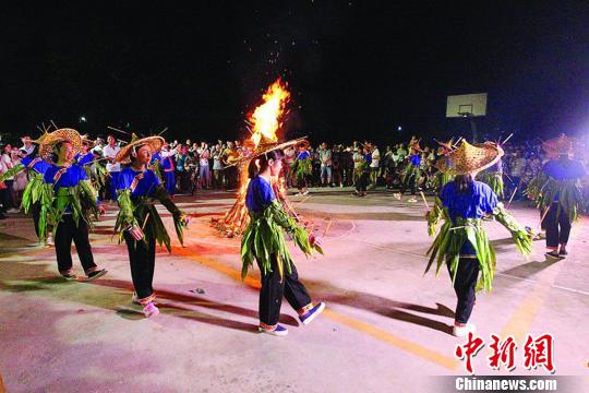 “舞火狗”又称瑶族少女成年礼,每年农历八月十五的夜晚,广东惠州市龙门县蓝田瑶族乡都会举办一场“舞火狗”成年礼活动。