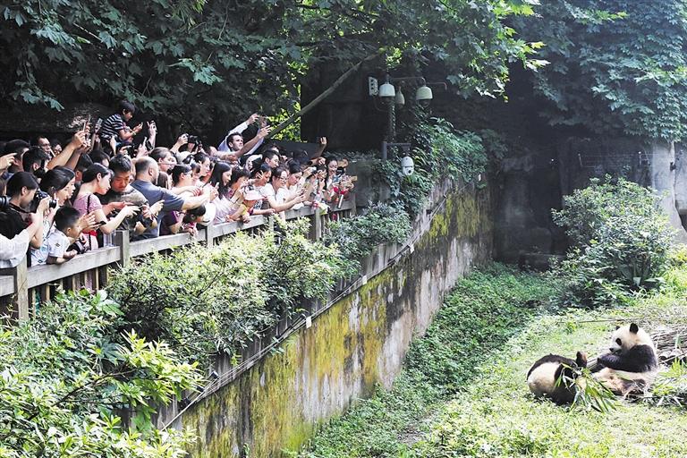 我市将打响“熊猫故乡”等品牌标识,让成都成为全球旅客“出游必选、途经必游”的世界旅游名城。图为憨态可掬的大熊猫吸引中外游客 本报记者 马丁 摄
