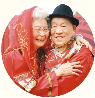 10月13日,江苏省苏州工业园区湖东社区工作委员会为辖区内的32对老年夫妻集体补办婚礼。图为一对老年夫妻在补办婚礼中拥抱。王建康摄(人民图片)