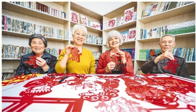 10月14日,浙江德清县武康街道开展“巧手剪纸迎重阳”活动,老人剪出“福”“寿”等剪纸,共迎重阳佳节。王 正摄(人民视觉)