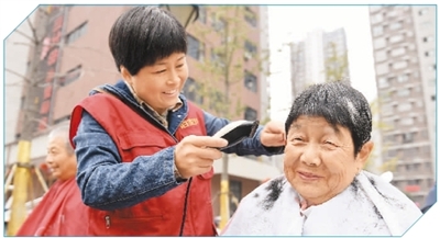 10月14日,安徽合肥市烟墩街道开展为老年人免费理发活动。新华社记者 张 端摄