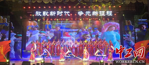用歌声礼赞改革巨变,用舞姿展现奋斗精神。舞台上建筑工人们精心装扮,动情歌唱,一段段感人的老照片、珍贵镜头在电子屏中滚动播放,令人动容。经过两个小时的精彩演出,晚会在全场高唱《敢为天下先》的歌声中落下帷幕。