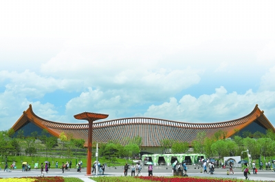 125根主桁梁、5400根小横杆、2184根拉杆以及696根水平支撑杆的中国馆,“如鸟斯革,如翚(huī)斯飞”(《诗经·小雅·斯干》),宏大却不失灵巧;排瓦为顶,构木为架……厚重而不笨拙。4510块玻璃“织成”一件华美外衣,在阳光下光华夺目。