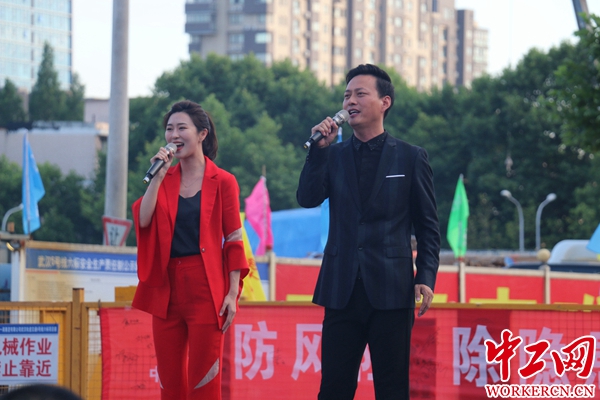 图为霍敬、孙悦在现场演唱原创歌曲《启航》
