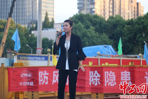 图为国家一级演员、影视歌后李殊演唱《世界因你而美丽》致敬职工
