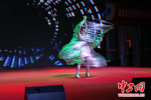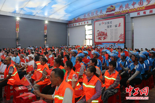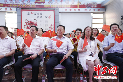 中工网讯 7月3日,在新中国成立70周年之际,由全总文工团开展的“不忘初心 牢记使命”主题巡演走进湖北武汉,慰问演出在江岸区塔子湖街道跃进社区党员群众活动中心举行。