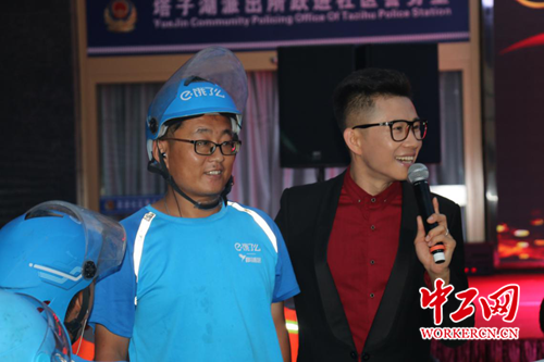 现场主持人与外卖小哥进行互动