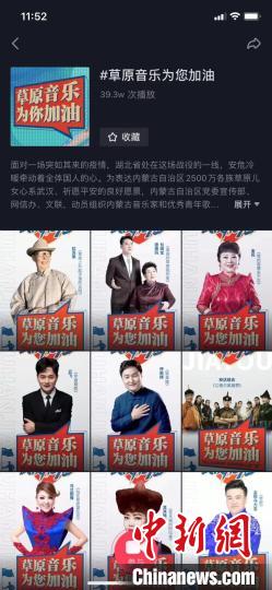 中新网呼和浩特2月5日电 (记者 张玮)记者从内蒙古自治区文化和旅游厅获悉,近日,内蒙古老中青三代音乐家和优秀歌手在家录制来自草原的音乐,组建“网上乌兰牧骑”,与湖北同心战“疫”。