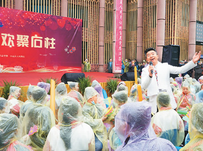 “太阳出来啰喂,喜洋洋啰啷啰……”嘹亮的歌声在渝东的崇山峻岭之间久久回荡,唱不尽人们的喜悦。10月15日上午,重庆市石柱土家族自治县中益乡华溪村,“亲情中华·欢聚石柱”文艺演出现场,虽然天空飘着蒙蒙细雨,但是台上的艺术家和台下的老百姓热情高涨。他们互相应和,共同唱起《太阳出来喜洋洋》这段耳熟能详的渝东民歌,抒发着对幸福生活的赞美。