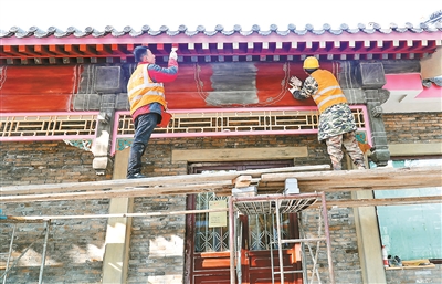 东四北大街历史上形成了“商居混合”格局。目前,沿线就有商户165家。仔细看这些建筑,使用的材料虽然相近,可工艺并不相同,有的砖缝细,有的砖缝粗。据介绍,整个整治提升工程坚持“恢复老街风貌原真性”的原则,精细施工,不简单套用传统做法。即便是相同工艺,也根据不同建筑风格,在施工中展示细节差异,避免同质化,达到错落有致的效果。