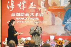 “这一刻我有很多话想说,但是这种场合我又说不出来,我的画笔跟随着时代,画得够多,90多岁搞了这样一次展览。大家看了请批评,我也改不动了。”昨天,“淳朴至真——高潮绘画艺术展”在中国美术馆开幕,93岁高龄的艺术家高潮离开轮椅,坚持站着向观众致意。