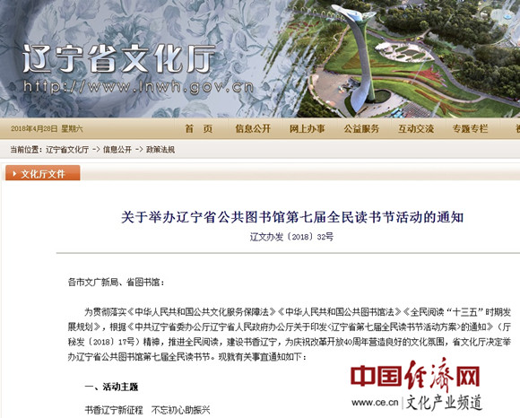 关于举办辽宁省公共图书馆第七届全民读书节活动的通知