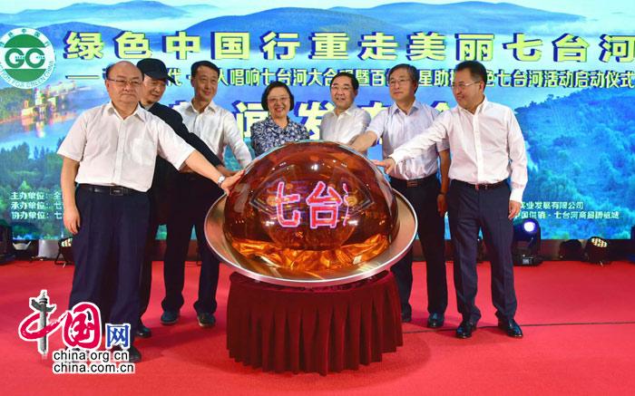 张永利、诸葛彩华、李冰、杜玉宽、韩靖、安虎贲等嘉宾共同启动“绿色中国行重走美丽七台河——引领新时代·万人唱响七台河”大合唱活动。