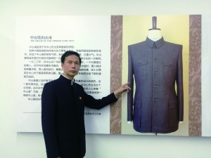 “中国历史上,共有五次服饰变革。中山装迄今为止,已有一百年的历史。服装在历史上并没有详细的记载,所以中山装的起源,一般有几种说法。”杨春鹏介绍说,中山装的历史起源众说纷纭:“一种是铁路装说,由孙中山根据日本朋友赠送的铁路工人制服,交由上海一服装店改制而成;第二种是企领文装说,由南洋华侨流行的上衣为基样设计改制而成;第三种是军服说,由日军陆军穿的士官服改制而成,是军服民用化。”