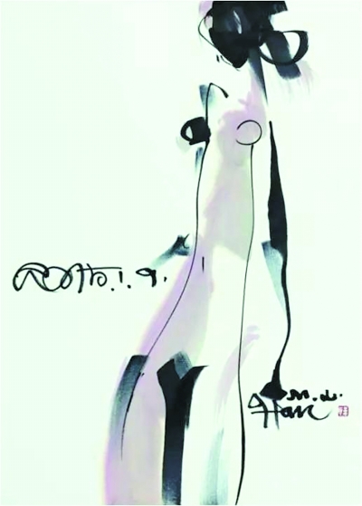韩美林的艺术有着多方面的题材内容,人物、动物、花卉、禽鸟、文字等,而与之相关的是绘画、书法、工艺、设计、雕塑等具体的艺术门类。这之中人体是其中最特别的部分。人体画调剂着美林的创作节奏以及他的身心,属于闲暇时的小品,有着午后茶那样的闲适。