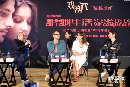 6月11日,嘉宾在沙龙活动现场交流。当日,2018国际戏剧季“戏剧π——情迷法兰西”暨明星版话剧《婚姻生活》沙龙活动在国家大剧院举行。《婚姻生活》即将于6月12日至13日在北京上演,作品改编自瑞典电影导演英格玛·伯格曼的同名银幕代表作,以一对婚姻濒临瓦解的夫妻为主人公,道出了婚姻生活“甜蜜又痛苦”的本质。