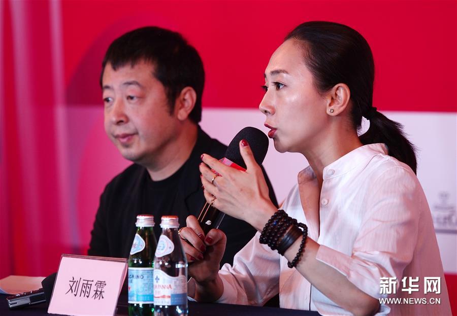 6月17日,中国女导演刘雨霖(右)在发布会上介绍《半边天》中她执导的短片《饺子》的拍摄背景。当日,由中国导演贾樟柯监制的金砖国家合作影片《半边天》在上海举行新闻发布会。来自金砖五国的5位女性导演,分别以“当代女性情感与社会”为主题拍摄一部电影短片,并汇集为一部片名为《半边天》的集锦长片。这部影片将于年内在国内公映。新华社记者任珑 摄