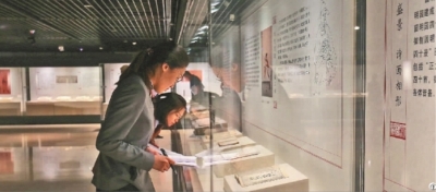 在国家图书馆典籍博物馆第一展厅,观众正认真观看“书卷为媒 友谊长青”展览展出的书籍。光明日报记者 韩寒摄/光明图片