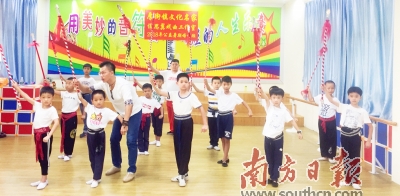 吴志滔说,目前“莞邑红豆”的孩子们正在学习一个新创编的剧目:《负米养亲》。剧目取材于《二十四孝》中孔子的学生子路为了赡养父母双亲,常常到百里以外的地方背回米来,尽到自己的孝心的故事,曲调优美,故事动人,戏份均匀。“我们将‘跪羊嘬乳’‘负米养亲’等传统故事融入剧目中,孩子们在学习的过程当中,就能感受到亲情的力量。”