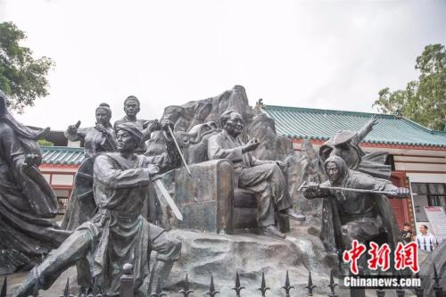 图为梁羽生公园门外,《七剑下天山》的雕像。