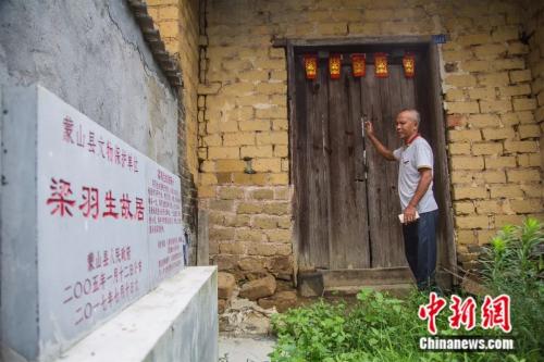 从蒙山县城驾车出发,在乡村小路上行驶20分钟后,到达文圩镇屯治村上梁羽生故居。在这个不显眼的小村庄里,一座年久失修的土坯房映入眼帘。这座土坯房门外已杂草丛生,房顶的瓦片碎片也洒满院内。