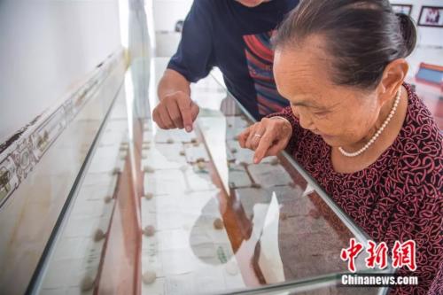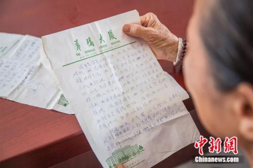 梁羽生妹妹陈文珠指着珍藏下来的梁羽生家书,回忆往事。