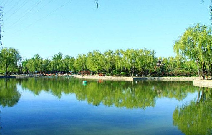 园内建有八座小山、45亩人工湖,
