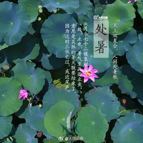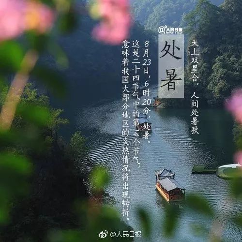 处暑,即为“出暑”,是炎热离开的意思。《月令七十二候集解》:“七月中,处,止也,暑气至此而止矣。”