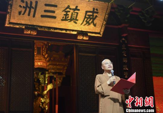 图为杭州灵隐寺的光泉大和尚正在进行开示祈福。 王刚 摄