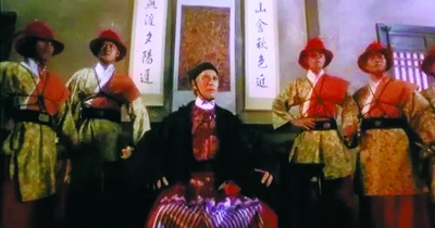 1992年版电影《新龙门客栈》。东厂头目身后的对联,内容出自刘长卿《陪王明府泛舟》。书法颇有馆阁气度,正是当时的书法现状。