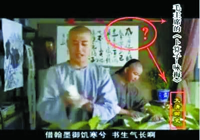 电视连续剧《大清御史》。明明是清代人物,书法内容却是毛泽东的《卜算子·咏梅》。