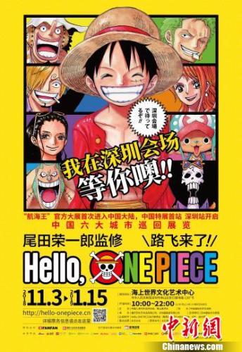 中新网深圳10月11日电 (记者 郑小红)由世界级漫画大师尾田荣一郎监修、在全球累计发行超过4.4亿本的漫画作品《航海王》(《ONE PIECE》),作为中日两国重要的人文交流项目,将首次举行中国大陆巡展,首站在深圳招商蛇口海上世界文化艺术中心启航。