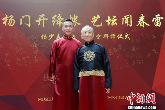 中新网北京10月16日电 (记者 高凯)杨门开绛帐,艺坛闻春雷。著名京剧表演艺术家、教育家杨少春先生收徒优秀青年演员魏学雷拜师仪式日前在京举行。