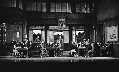英达记得,当初排《茶馆》时,焦菊隐导演曾让每个演员像中戏学生一样做小品,自行编写人物背后的故事,最后组合到一起,完成这样一部庞大的作品。这一代演员自然也八仙过海,各显神通。“最可乐的就是黄宗洛叔叔。当时有一种说法,塑造一个人物是从衣帽间开始,所以他就跑到那个服装间里面,戴帽子什么的,就出来了。焦先生说这是什么?他又回去了,整天就是这样。直到最后,才算把松二爷这个人物定下来,全是他瞎试出来的。”