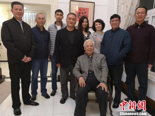 台湾知名儒学传人、国画大师江逸子先生(前坐者)日前到访福清黄檗文化促进会。 陈芝宽 摄