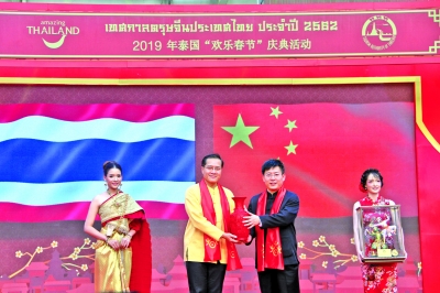中国驻泰国大使吕健与泰国旅游和体育部部长威拉萨出席2月4日在曼谷暹罗广场举办的2019泰国“欢乐春节”开幕式演出