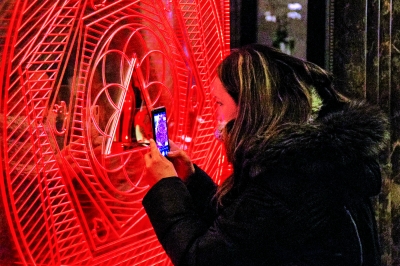 “透镜花灯”的橱窗中,俏皮的小猪化作一只灯笼,经过透镜折射出无数分身,在除夕之夜点亮万家灯火。