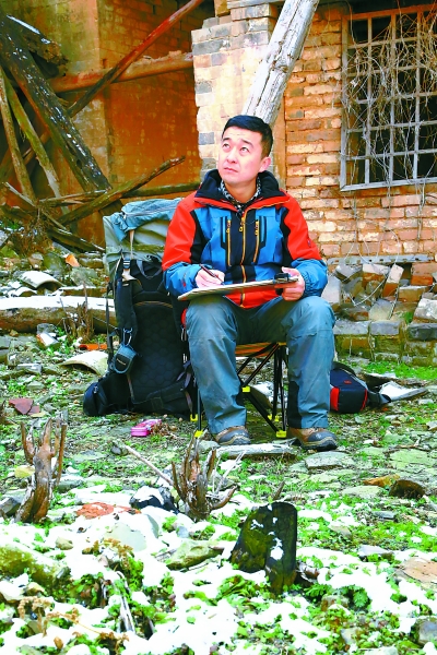 连达没有学过绘画,但多年以来,他已经习惯用钢笔写生的形式将寻访到的古老建筑描绘和记录下来。“我没有学过美术,就是硬画,去书店买绘画方面的书自学,什么透视,近大远小,然后就是多练,画古建筑就像练书法、做数学题一样,数量上来了自然就好了。”
