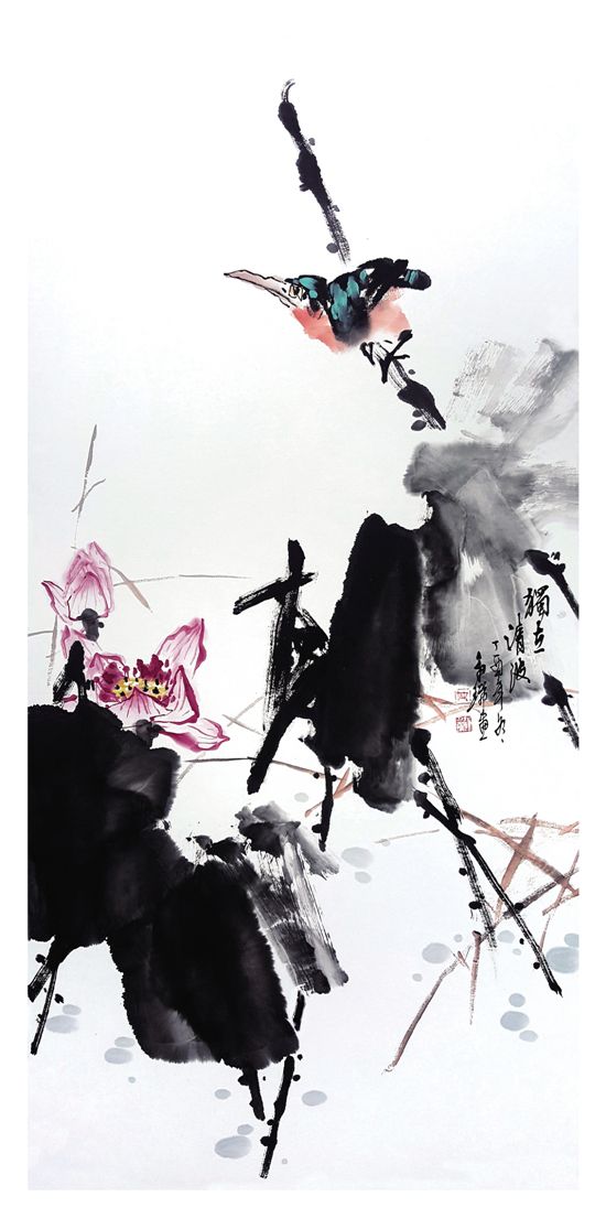 我个人认为,西洋画是做加法,而我们中国画是做减法。西洋画时间花得越多越说明有功力,有深入刻画的东西。我们中国画是对生活、对自然的一种高度概括,是写心、传情、达意的表现技能。西洋画要的是表面的视觉效果,而中国画只是艺术表现的载体,我们真正要表达的是一种思想内涵,是人的内在,让观众看到的是人而不是画。很多高层次艺术家的作品,让人一眼就能看出作者的修为、文化、认知和品位。