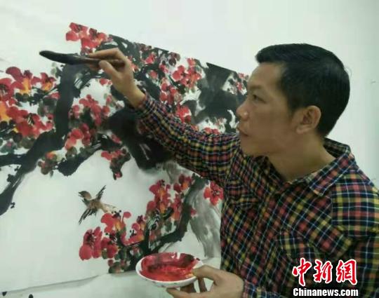 陈志雄在创作红棉 索有为 摄