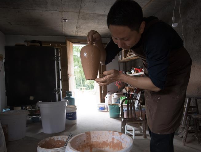 让·安哥拉与夫人均是著名雕塑家,安哥拉夫人表示,这些留法勤工俭学的艺术家是中西文化交流的奠基者,他们很好地继承了法国艺术语言,同时融合了东方文化的意境。她从其中的雕塑看出,中法艺术家对于泥土的力量感是一致的。