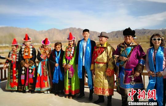 游客和当地蒙古族民众合影留念。 丁思 摄