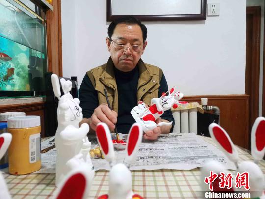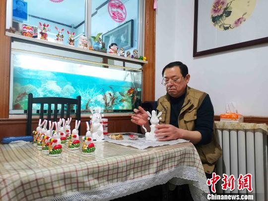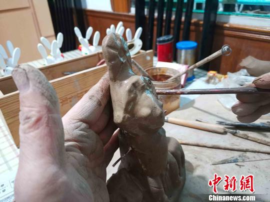 图为周秉生为“兔子王”塑形。 郝学娟 摄
