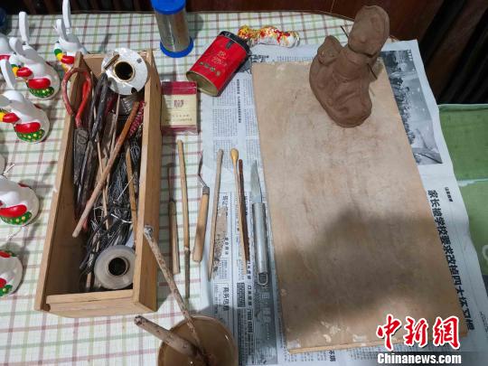 5月15日,记者在山东省省级非物质文化遗产泥塑兔子王代表性传承人周秉生家中看到,面积不大的客厅里摆满了各色各样“兔子王”。这些“兔子王”白面红唇、兔面人身,长长的耳朵与头部之间用弹簧相连,有的身着红袍、背插红旗,有的手持药杵稳坐虎骑之上,造型别致。周秉生正坐在工作台前,拿着刚在黄河边采集的细泥土塑形。周秉生告诉记者,他们家祖孙四代人与“兔子王”打了一百多年交道,传承至今。